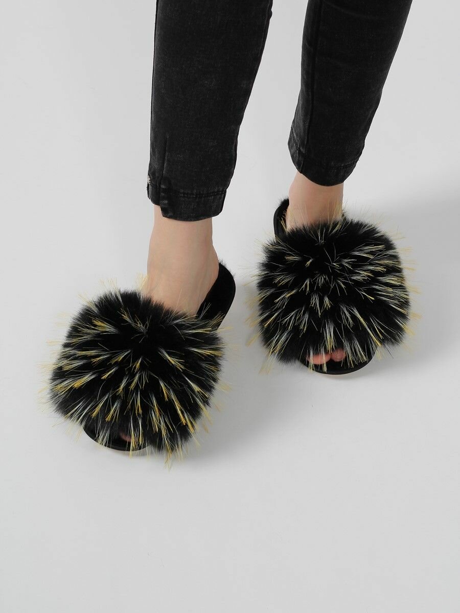 Тапочки Меховой век, размер 36, черный/золотистый 1 600 ₽