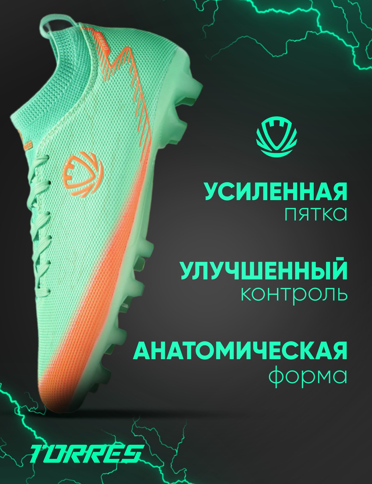 Бутсы TORRES, размер 38, оранжевый, зеленый 3 561 ₽