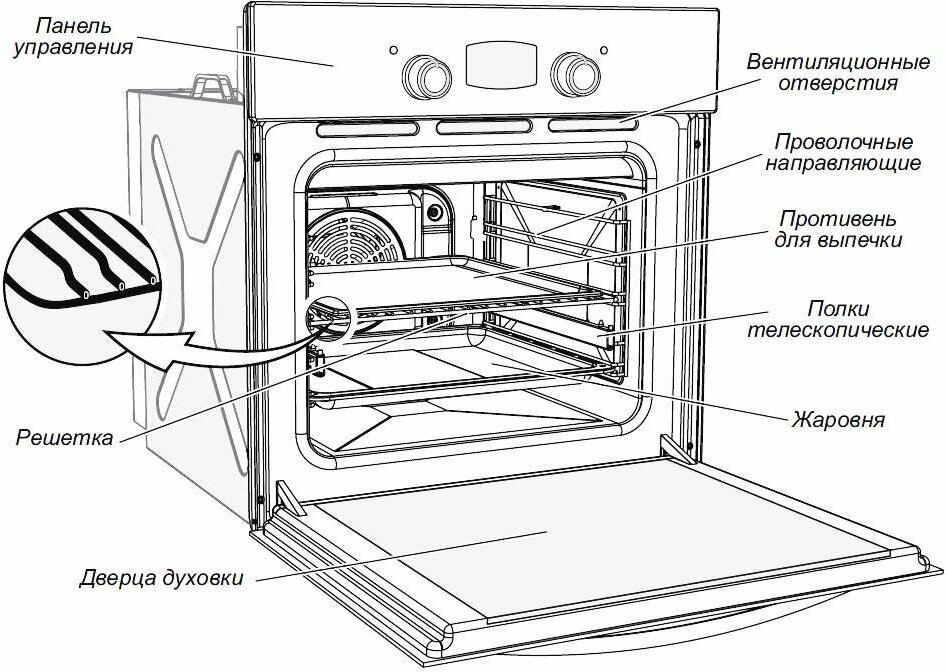 | Подробная комплектация | духовой шкаф, комплект проволочных направляющих, противень для выпечки, жаровня для сбора жира, решётка, вертел, сменное сопло для подключения газового баллона, винты (2 шт.), шайбы (2 шт.), руководство по эксплуатации |