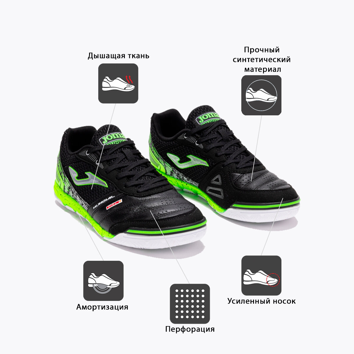 10 цен на Футзалки JOMA, размер 42.5 EUR/ 09 USA, черный/салатовый