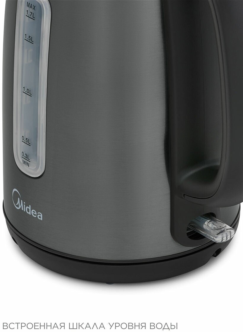 Чайник Midea MK-8026 1.7л. 2.2 кВт металл, нержавеющая сталь/черный (MK-8026)