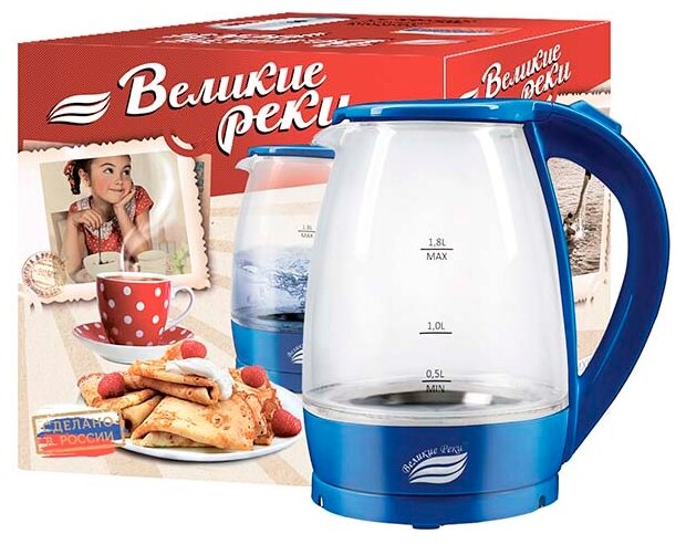Чайник электрический Великие Реки Дон-1 синий, 1,8 л, стекло, 1850 Вт