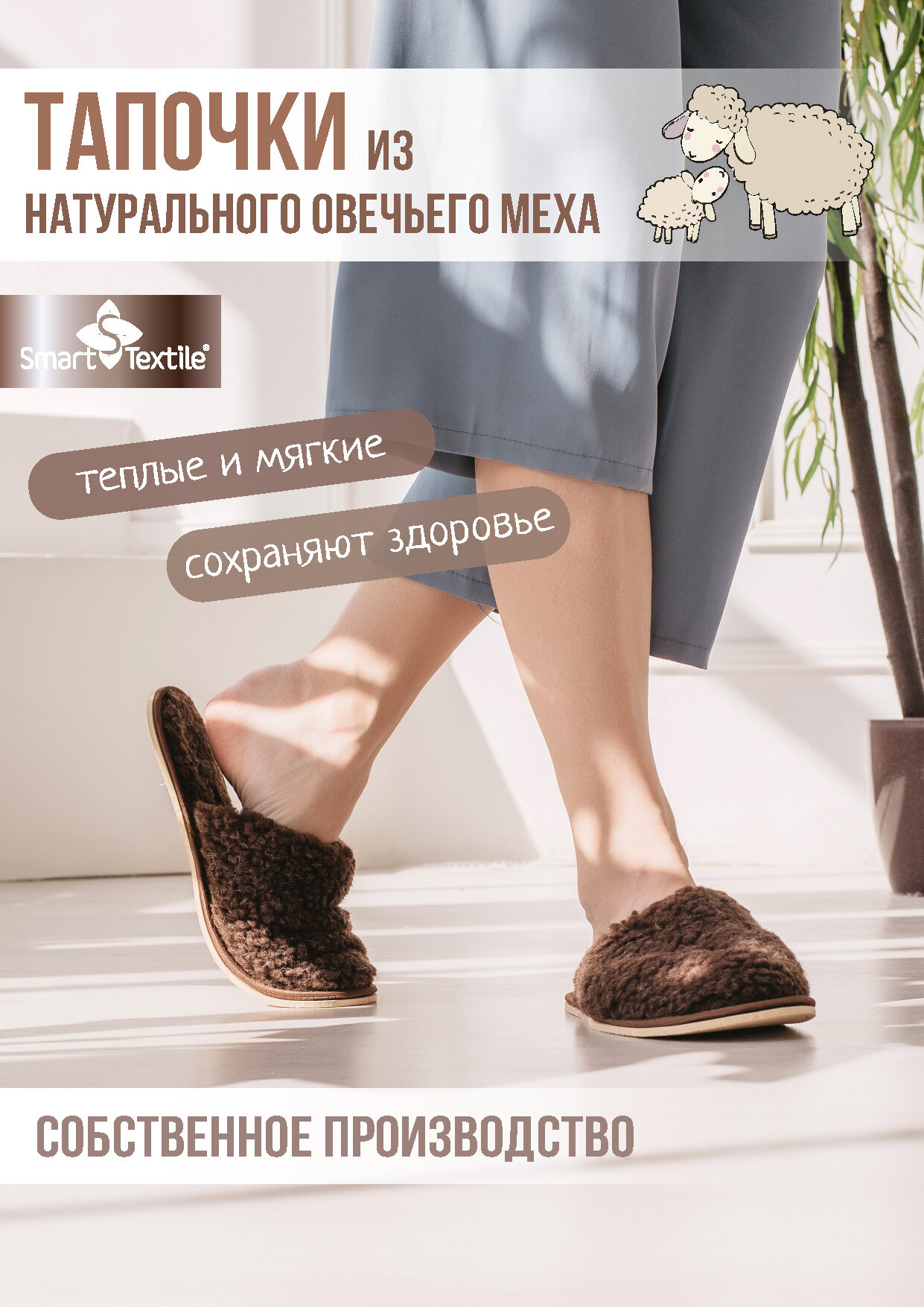 10 цен на Тапочки Smart Textile Тапочки "Домашнее тепло" из трикотажного овечьего меха, размер 38/39, коричневый