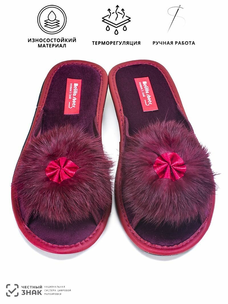 Тапочки melitta shoes, размер 37, =23,5см, бордовый 1 130 ₽