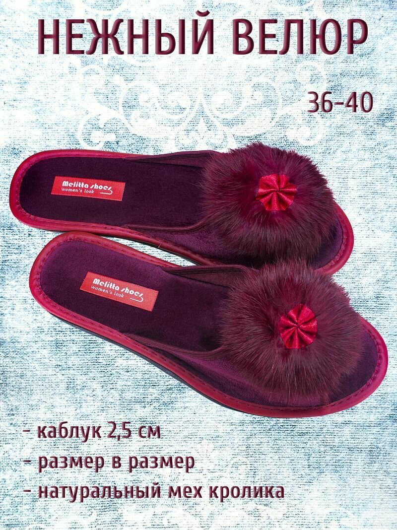 Тапочки melitta shoes, размер 38, =24см, бордовый 1 130 ₽