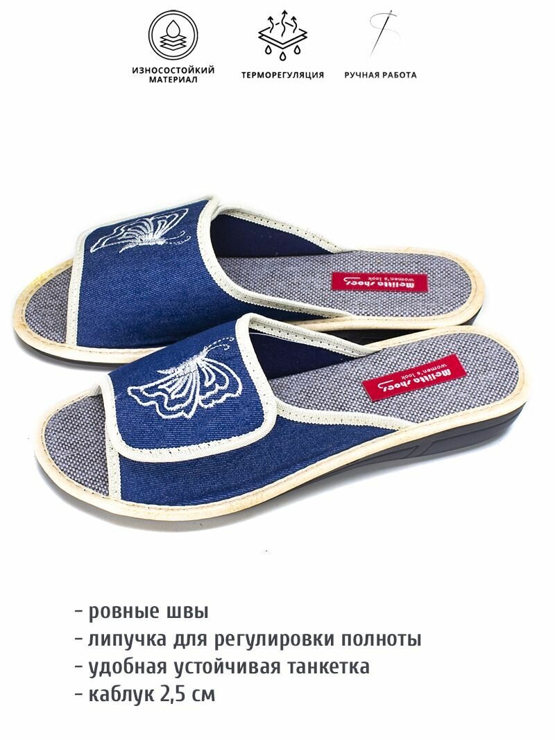 Тапочки melitta shoes, размер 36, =23см, синий, джинс 1 190 ₽