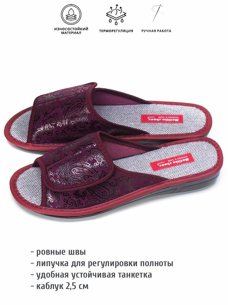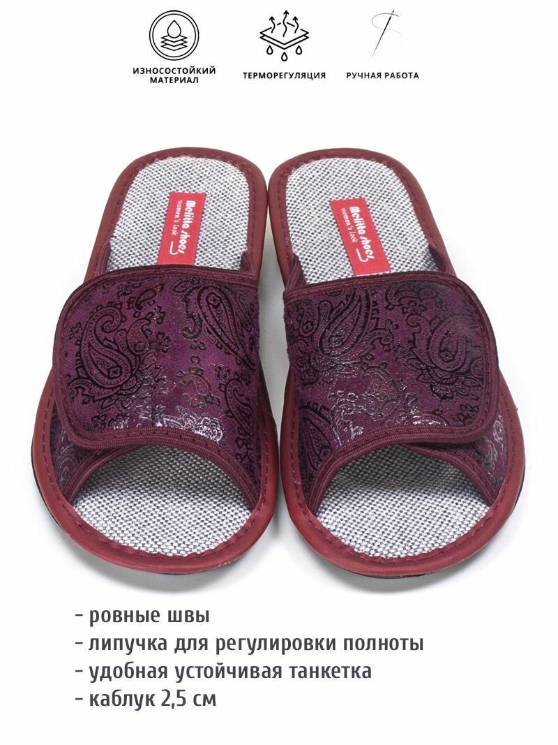 Тапочки melitta shoes, размер 37, =23,5см, бордовый 1 130 ₽