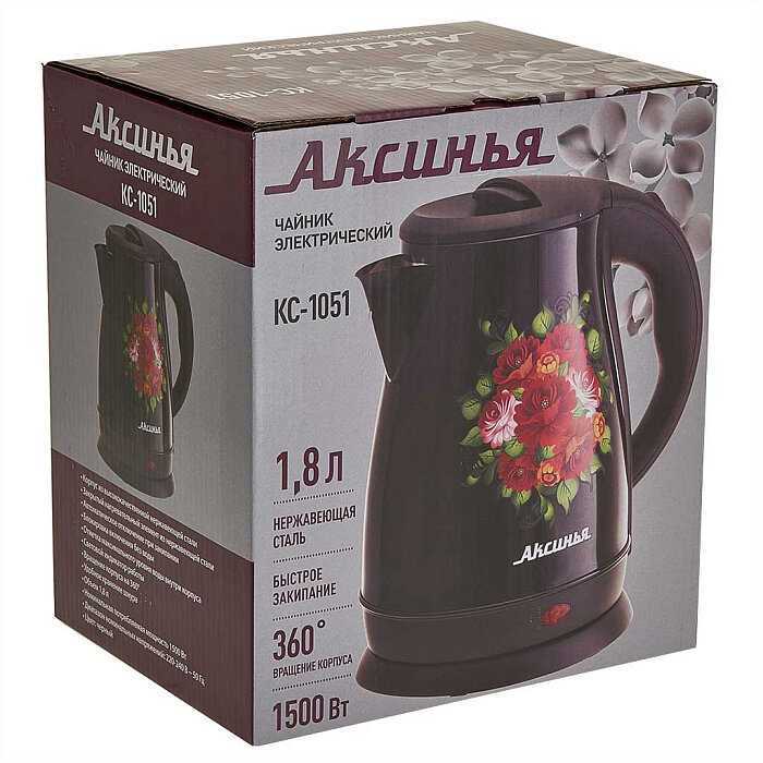 Электрические чайники аксинья КС-1051 черный нерж "Узоры".: 1,8л 1 190 ₽