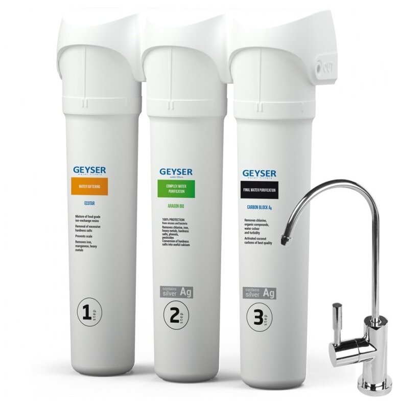 Фильтр под мойку Гейзер Смарт Био 521 (для жесткой воды) с удобной заменой картриджей