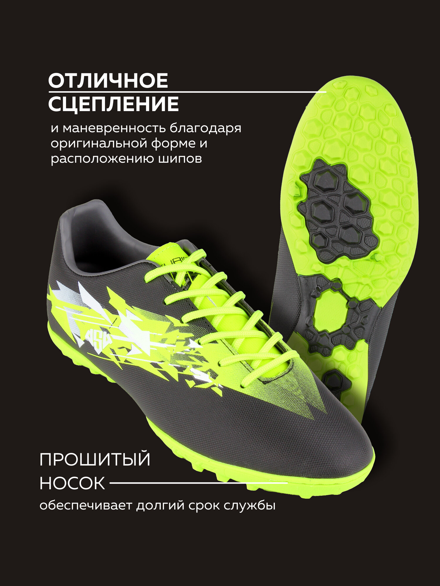 Бутсы AS4, размер 39, черный/зеленый информация: