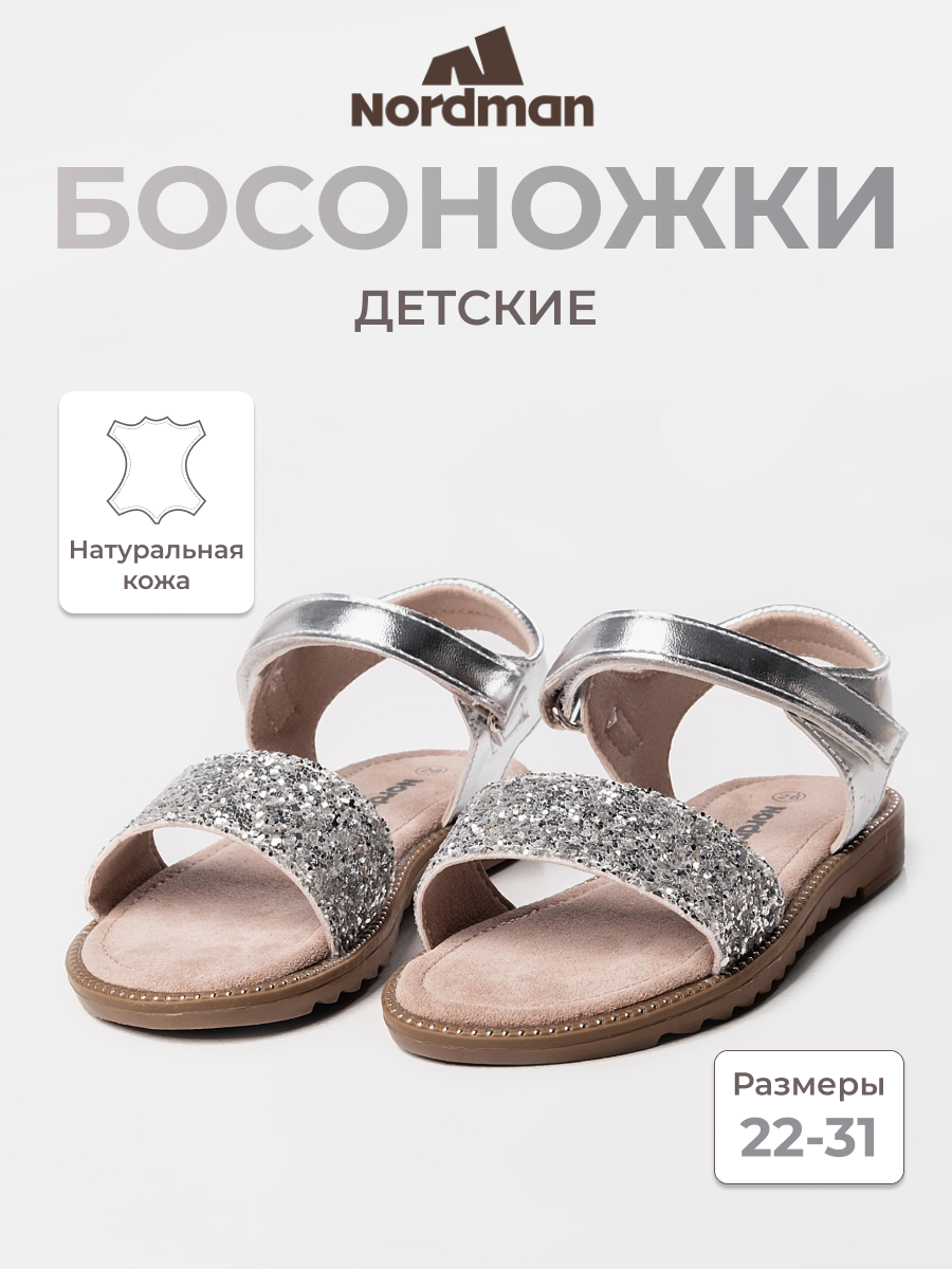Босоножки Nordman Весна-лето 2025, размер 31, серебристый информация: