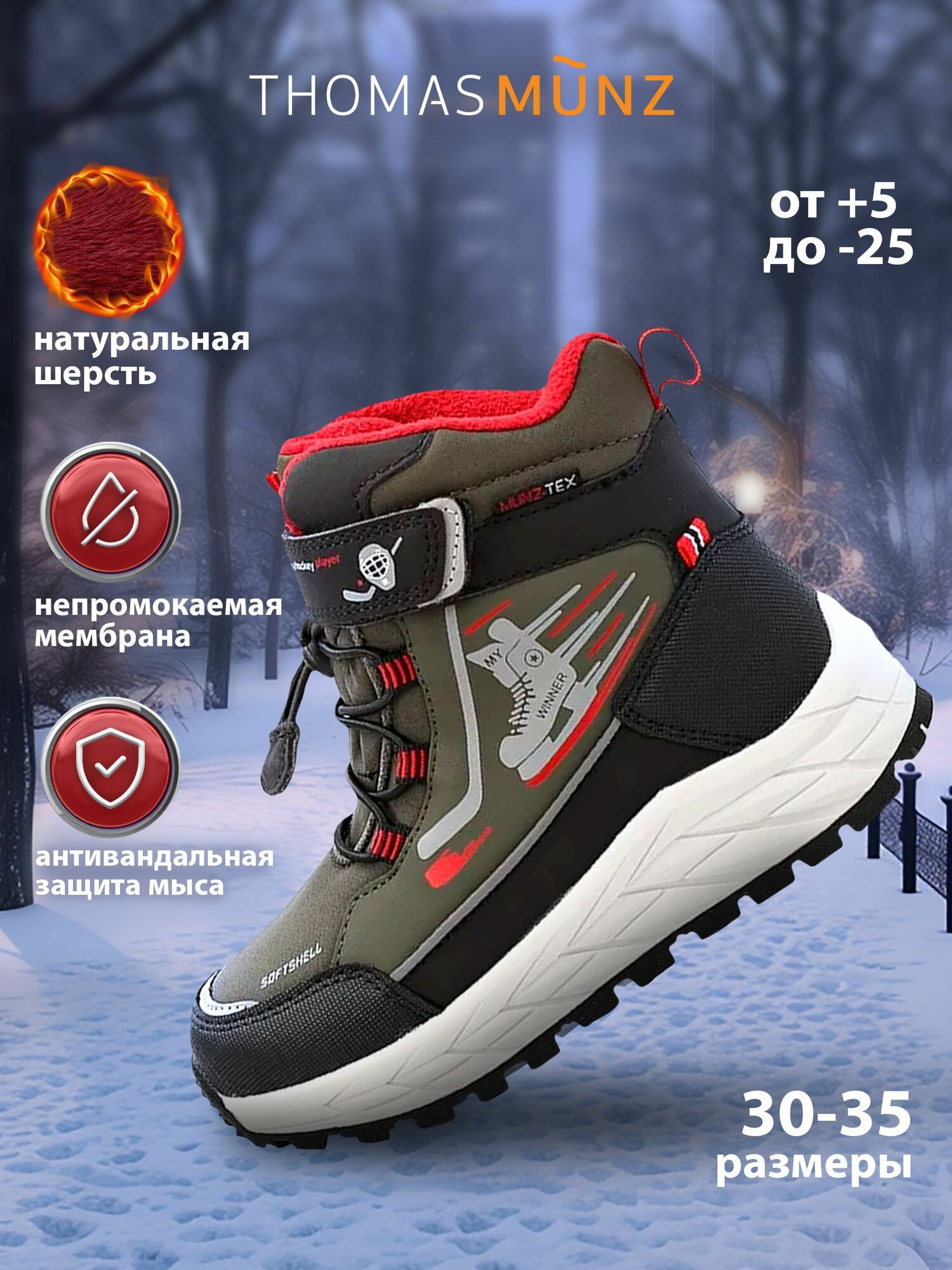 Ботинки дерби Thomas Munz, размер 33, хаки/черный информация: