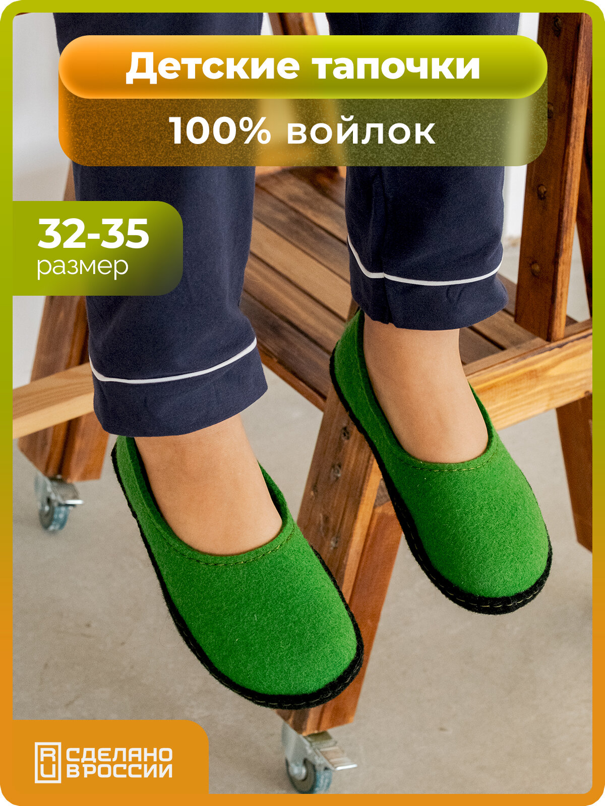 Тапочки HOLTY Хатанга Кидс, размер 35, оранжевый