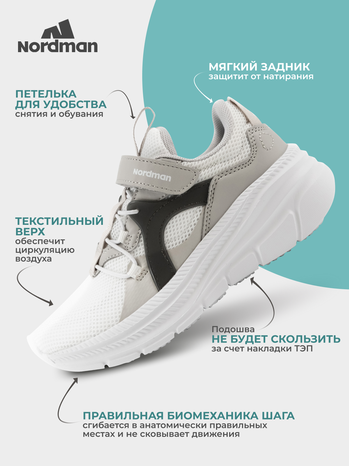 Кроссовки Nordman Весна-лето 2025, размер 34, серый 3 551 ₽