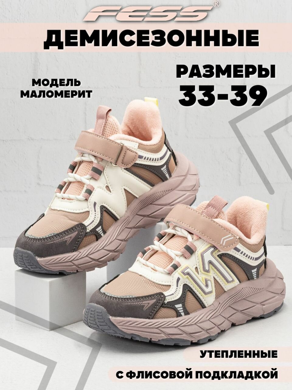 Кроссовки FESS Кроссовки FESS для девочек, размер 36, розовый информация: