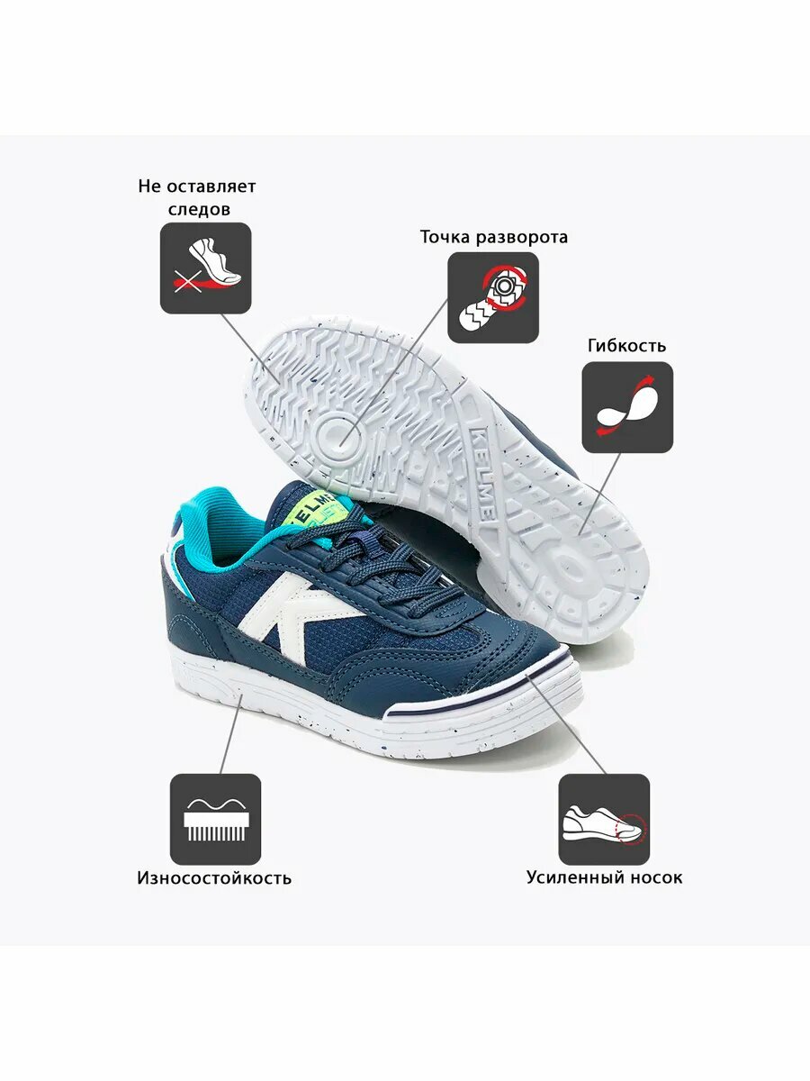 Футзалки Kelme, размер 20 см/01.5US, темно-синий/белый 5 014 ₽