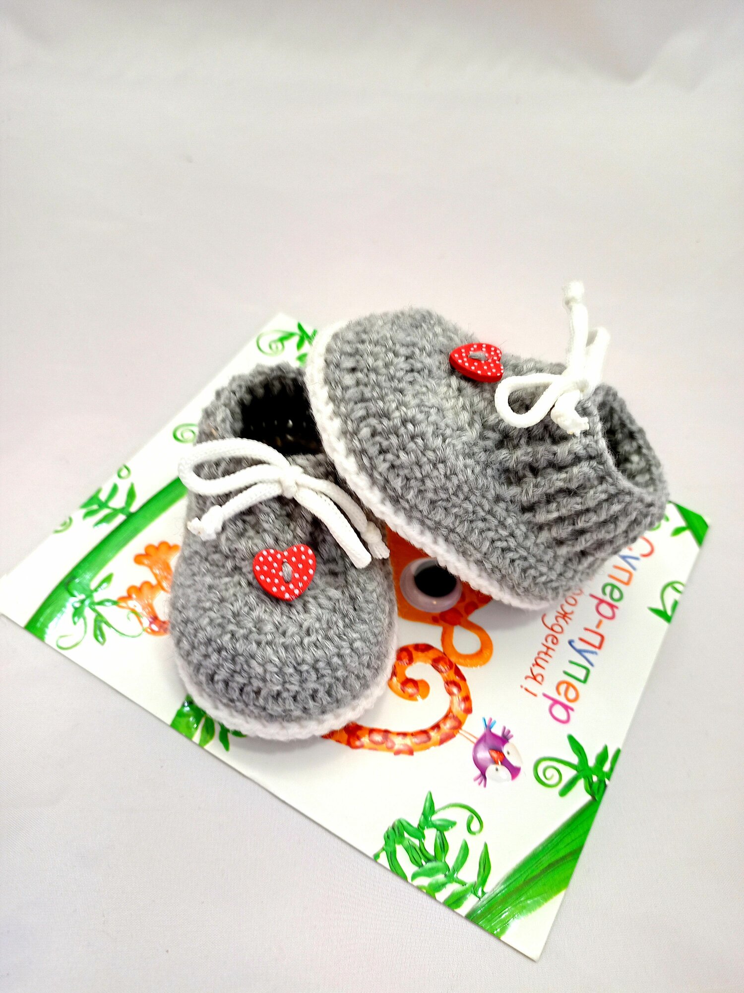 Пинетки, размер 8см (0-1мес), серый меланж информация: