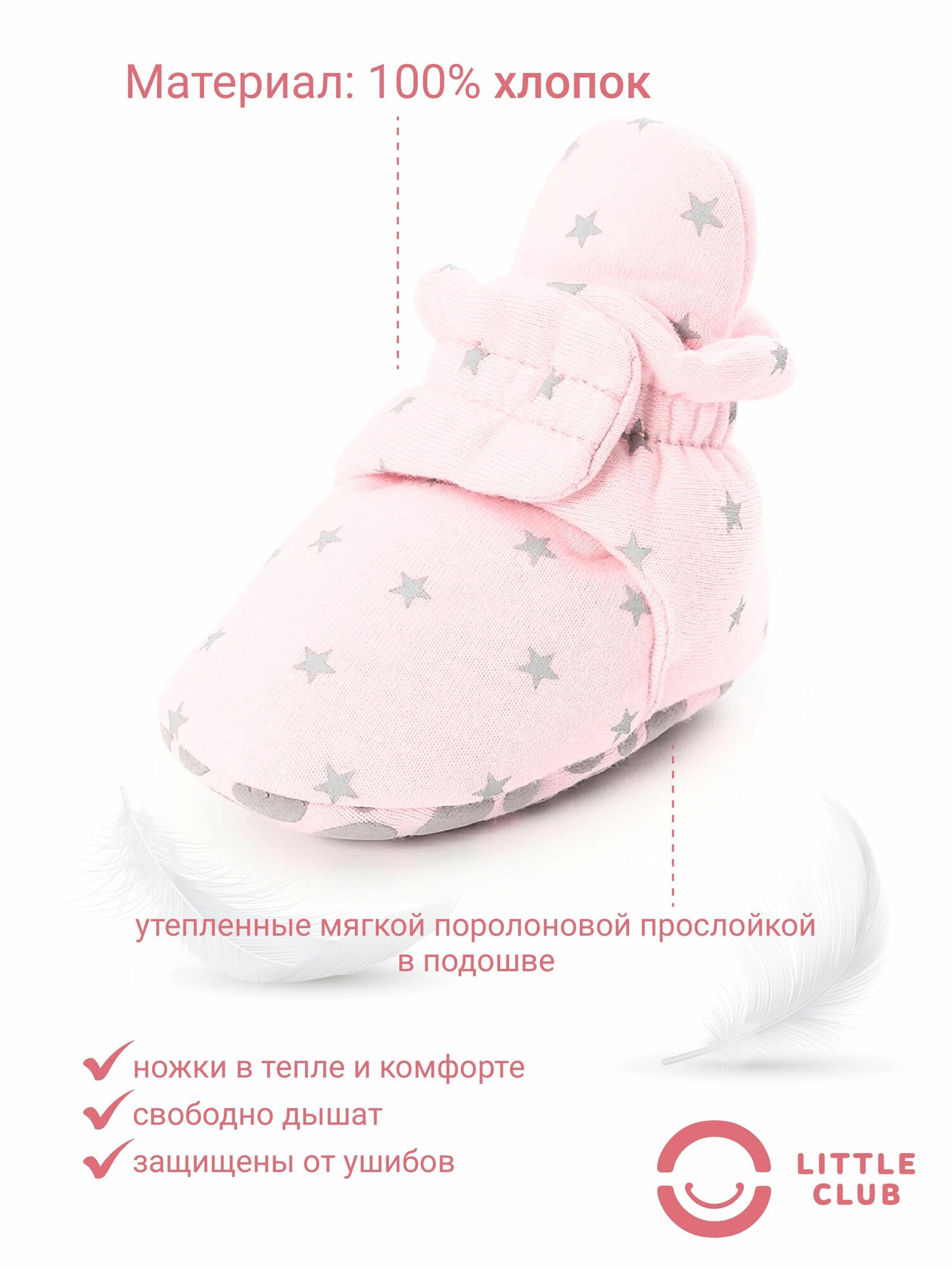 Отзывы на Пинетки LITTLE CLUB для новорожденных, размер 11 размер (0-6 месяцев), розовый со звёздочками