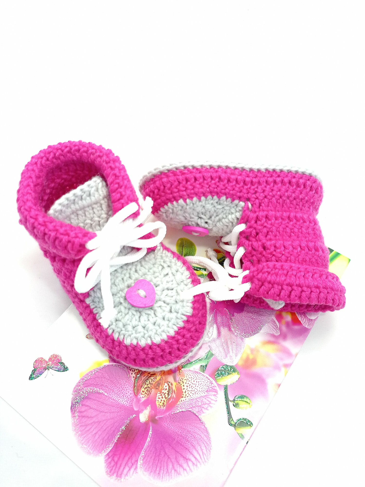 Пинетки, размер 9,5см (2мес), серый, фуксия информация: