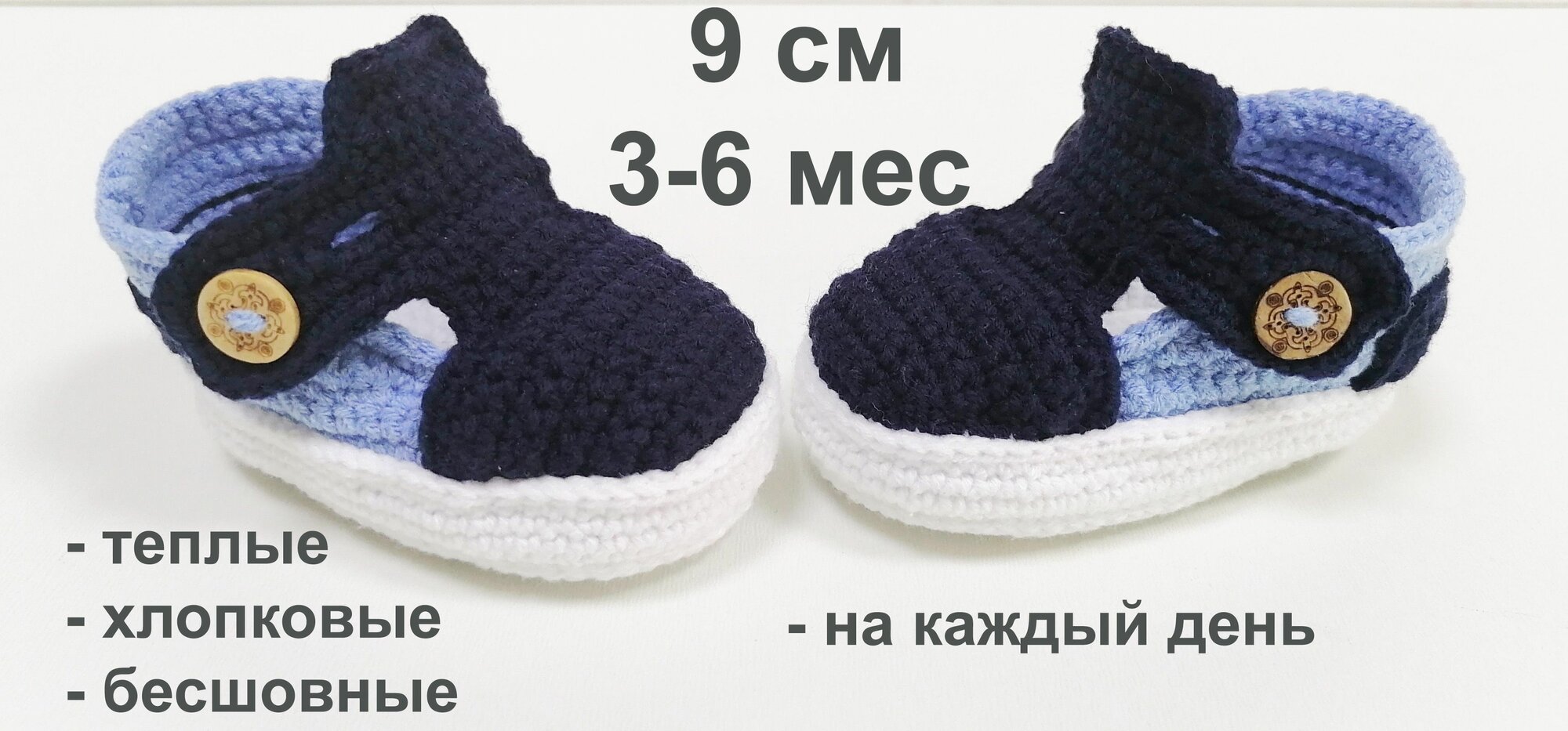 Пинетки, размер 9 см по подошве, белый, синий, голубой информация: