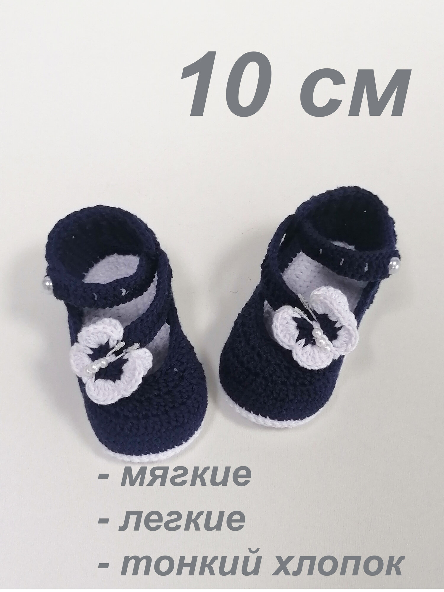 Пинетки, размер 10 см по подошве, белый, синий информация:
