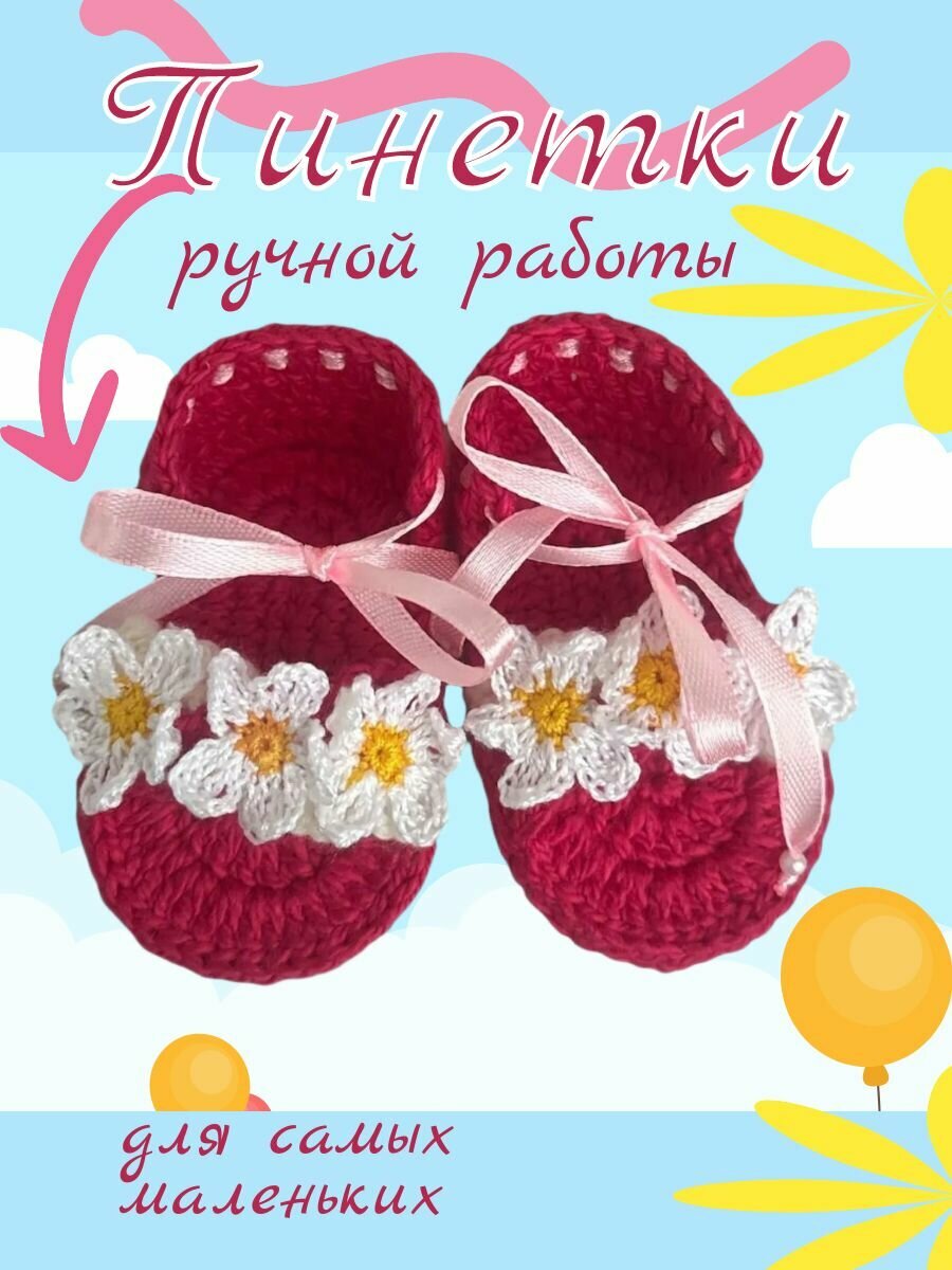 Пинетки ручная работа, комплект 2 шт., размер 9 см, розовый информация: