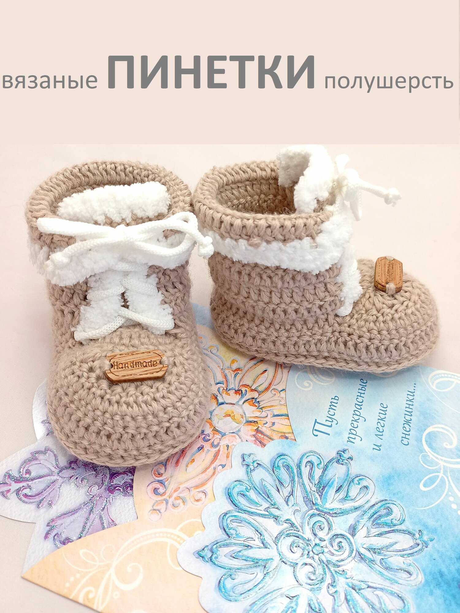Пинетки, размер 9,5 см (2мес), бежевый информация: