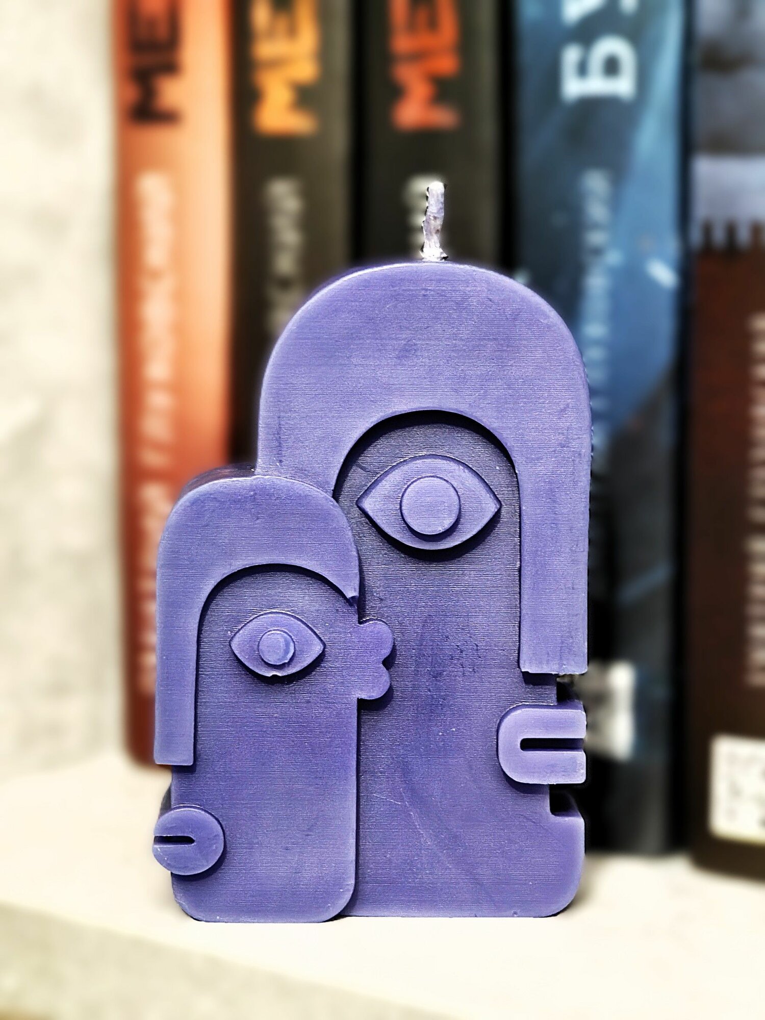 Свеча "2 Лица", интерьерная, фигурная, пчелиный воск, ручная работа, фиолетовая информация: