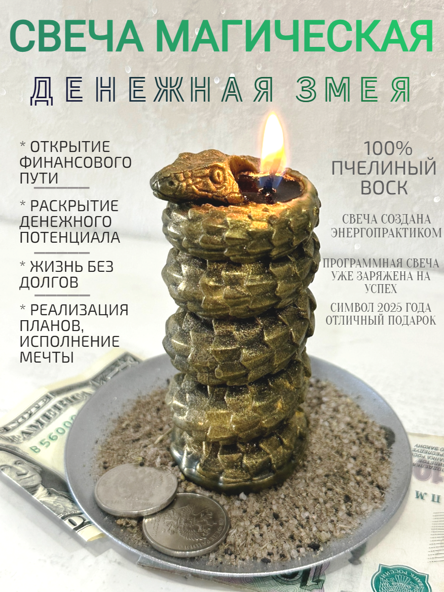 Свеча "Денежная Змея", ручная работа, пчелиный воск, 10x10 см информация: