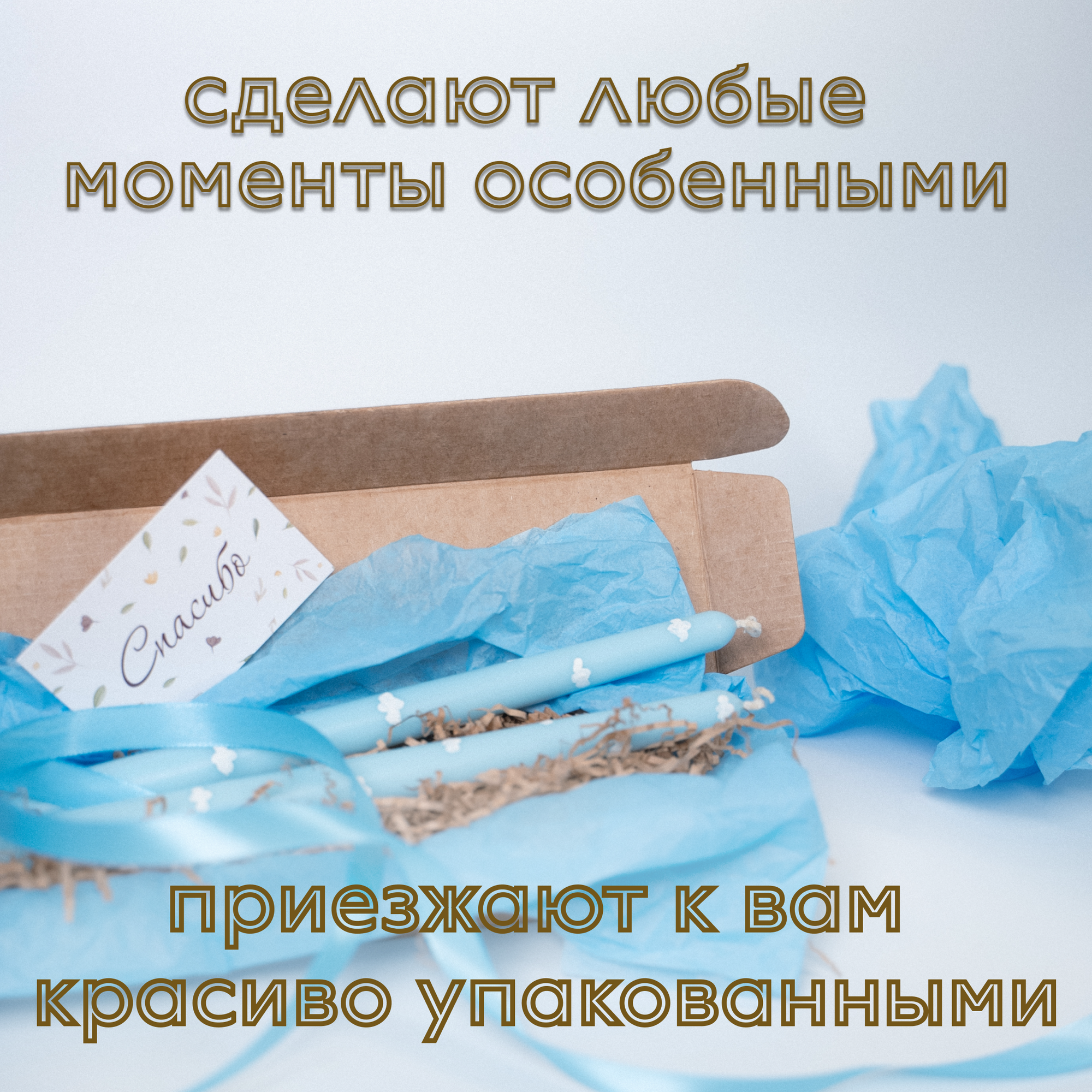 Отзывы на "ICY" Столовые свечи голубые с росписью облака оливковый воск / набор 2 шт.