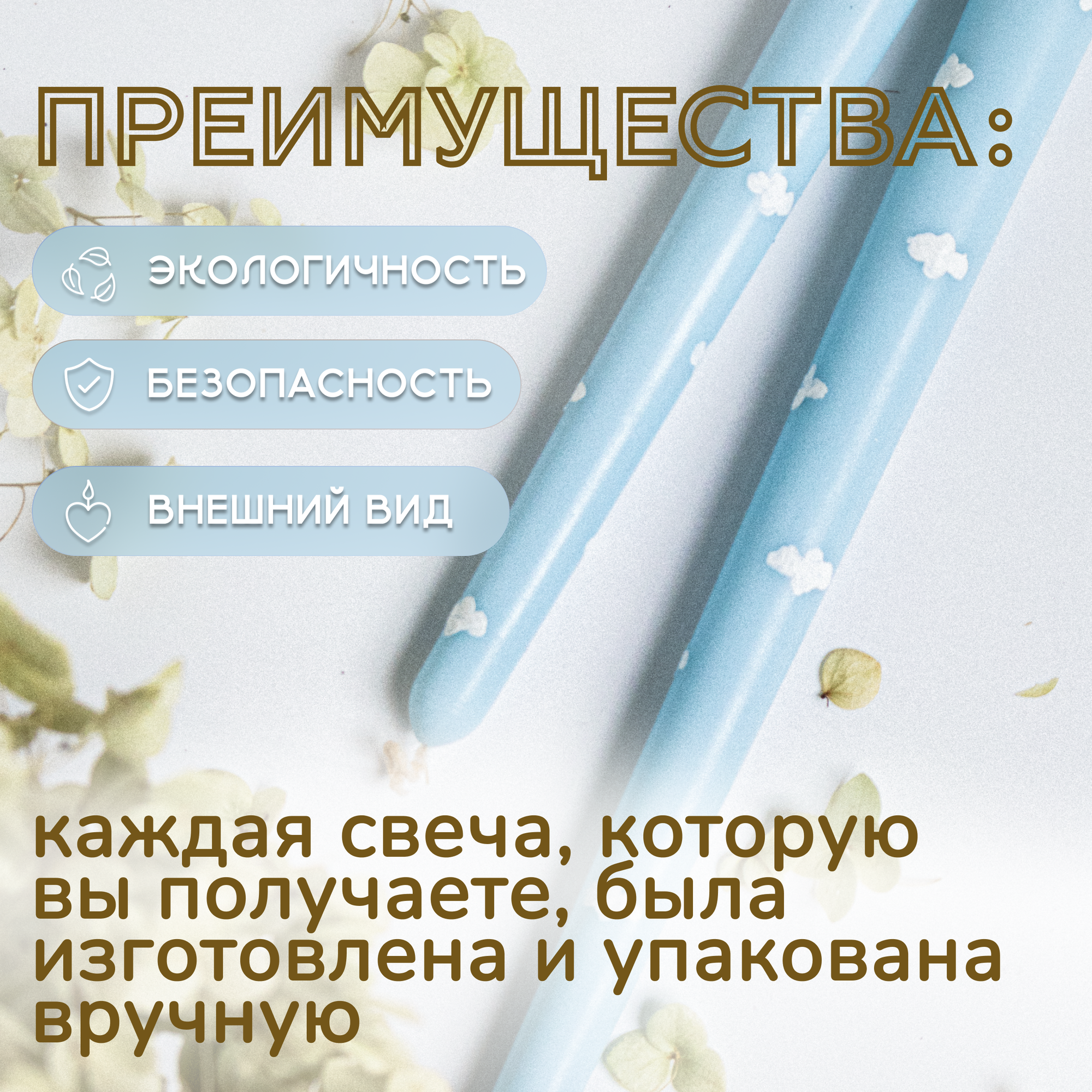 "ICY" Столовые свечи голубые с росписью облака оливковый воск / набор 2 шт. информация: