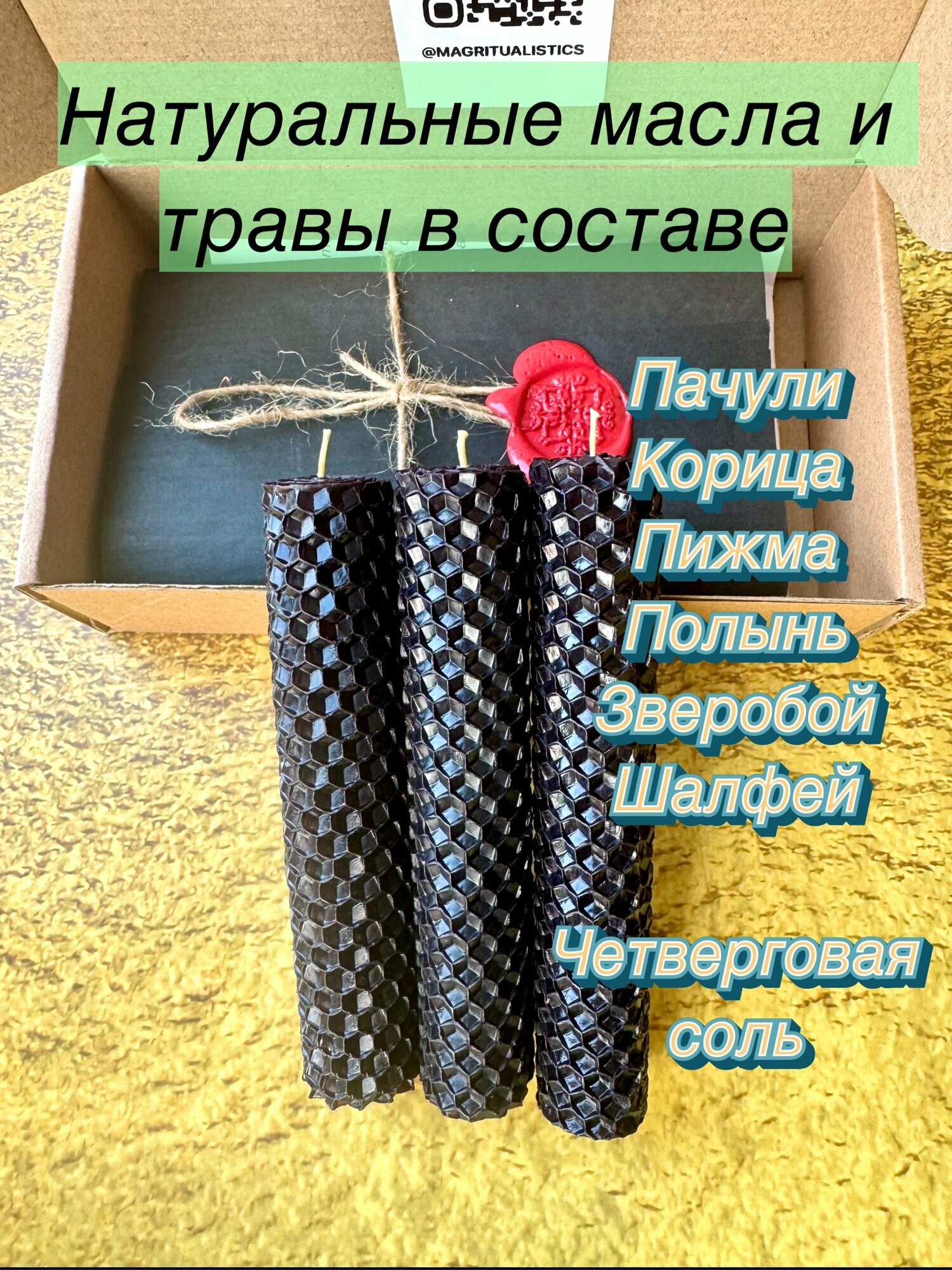 Свечи из вощины с травами Чистка Денежного Канала. Комплект из 3 свечей. информация: