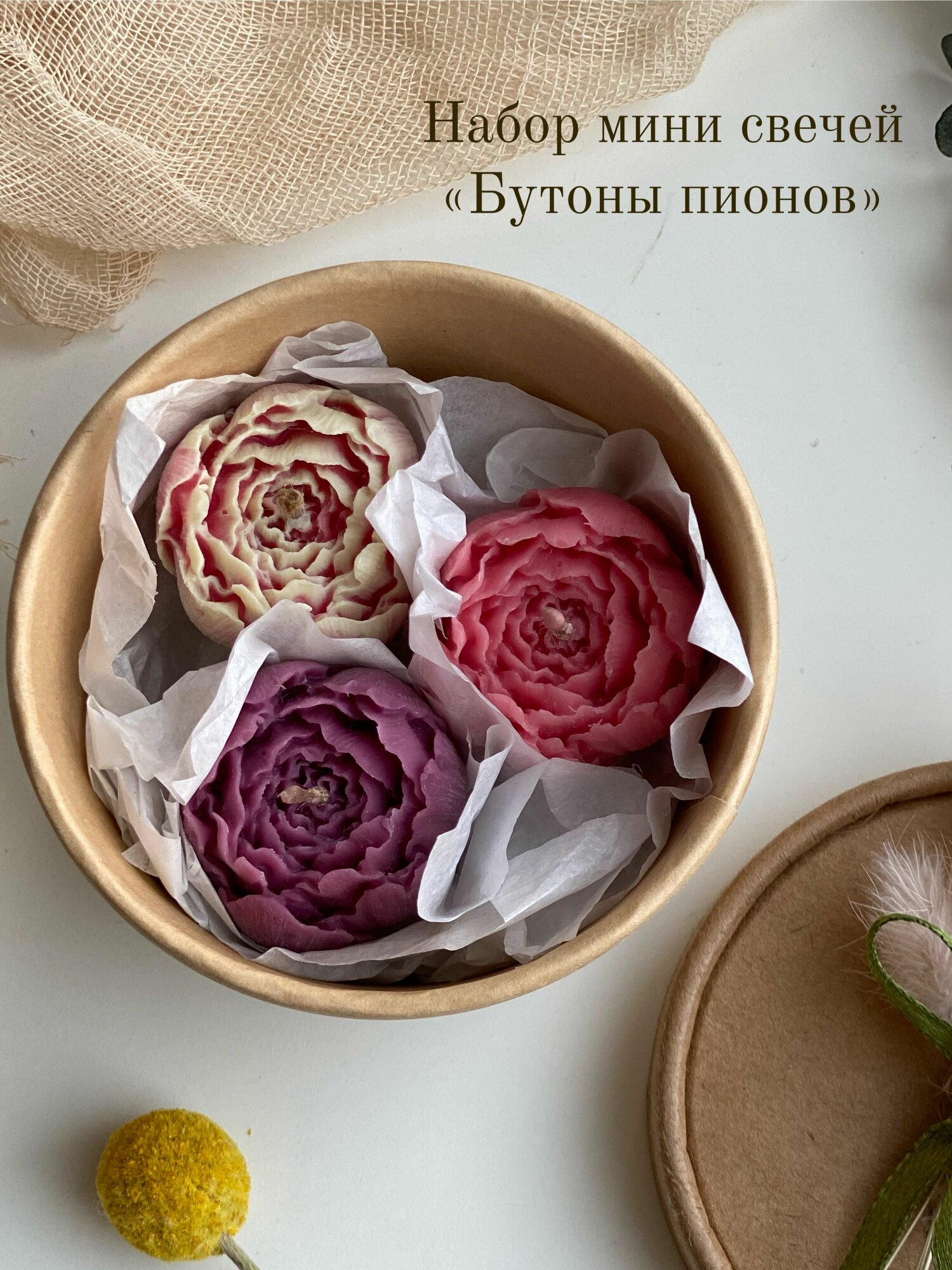 Отзывы на Подарочный набор свечей " Пионы ", 3шт. для декора / Декоративные свечи из натурального пчелиного воска