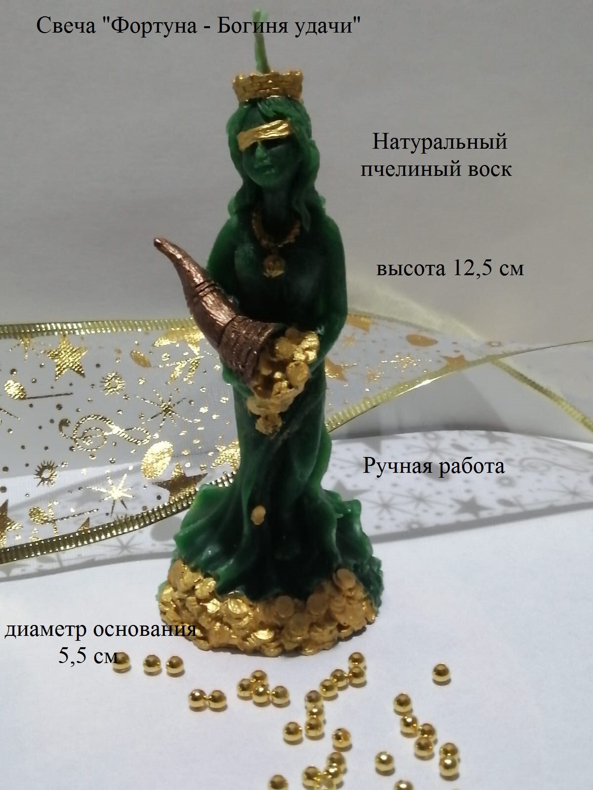 Свеча "Фортуна - богиня удачи" из натурального пчелиного воска, зеленая информация: