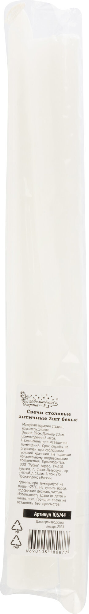 Свечи столовые античные белые "Волшебная страна", 25 см, 2 шт. информация: