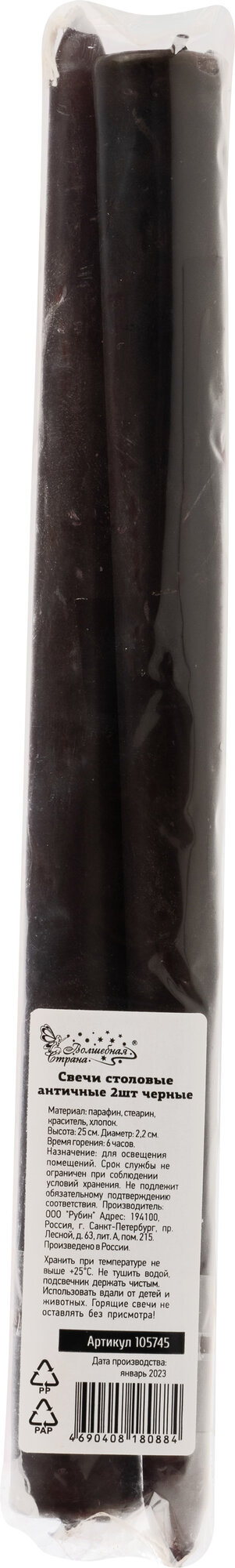 Свечи столовые античные черные "Волшебная страна", 25 см, 2 шт. информация: