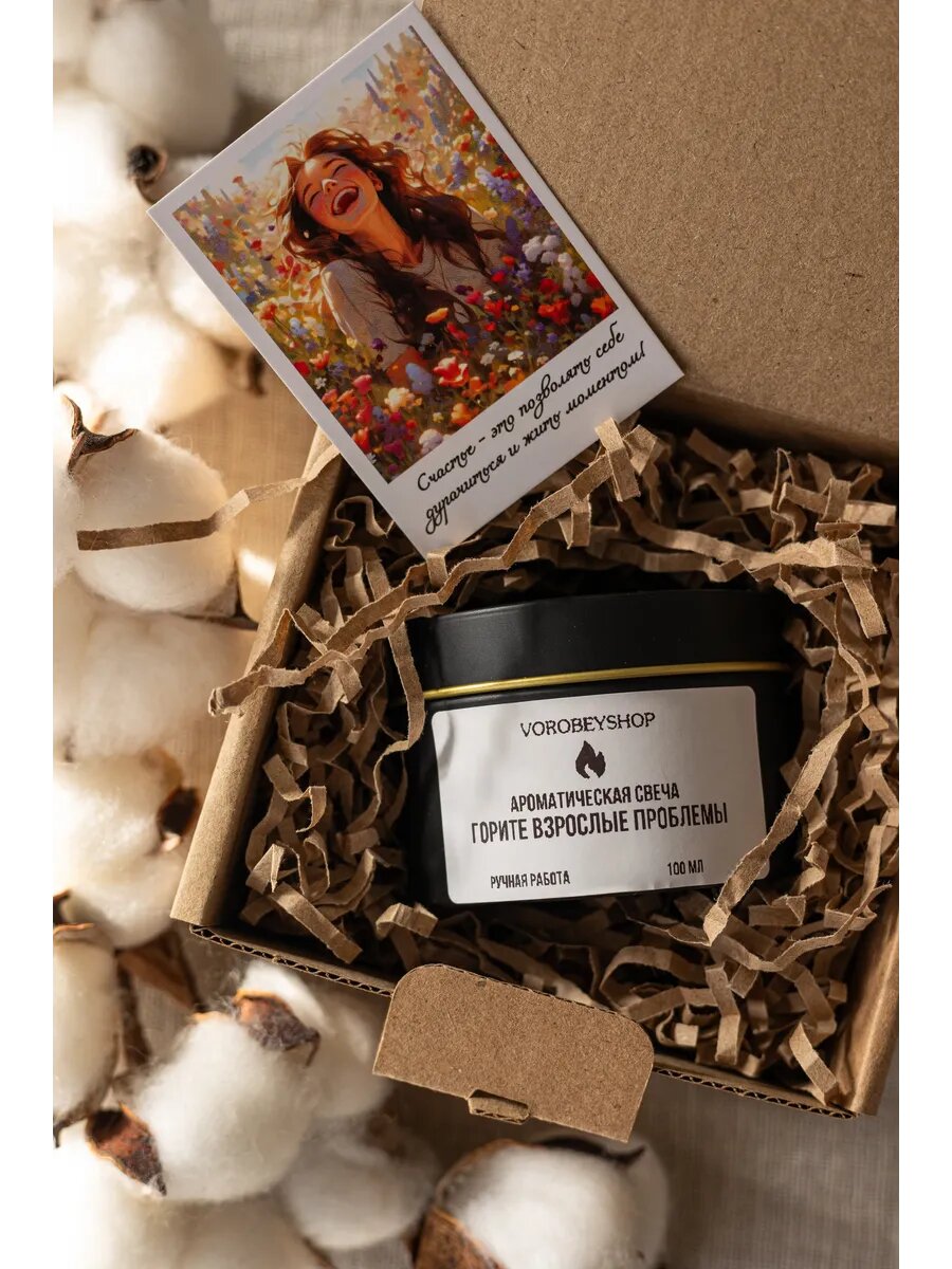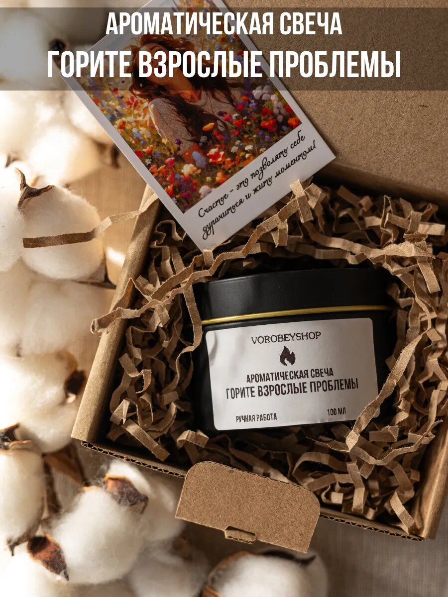 Свеча Vorobeyshop "Горите, взрослые проблемы", ароматическая, массажная, 25 ч горения информация: