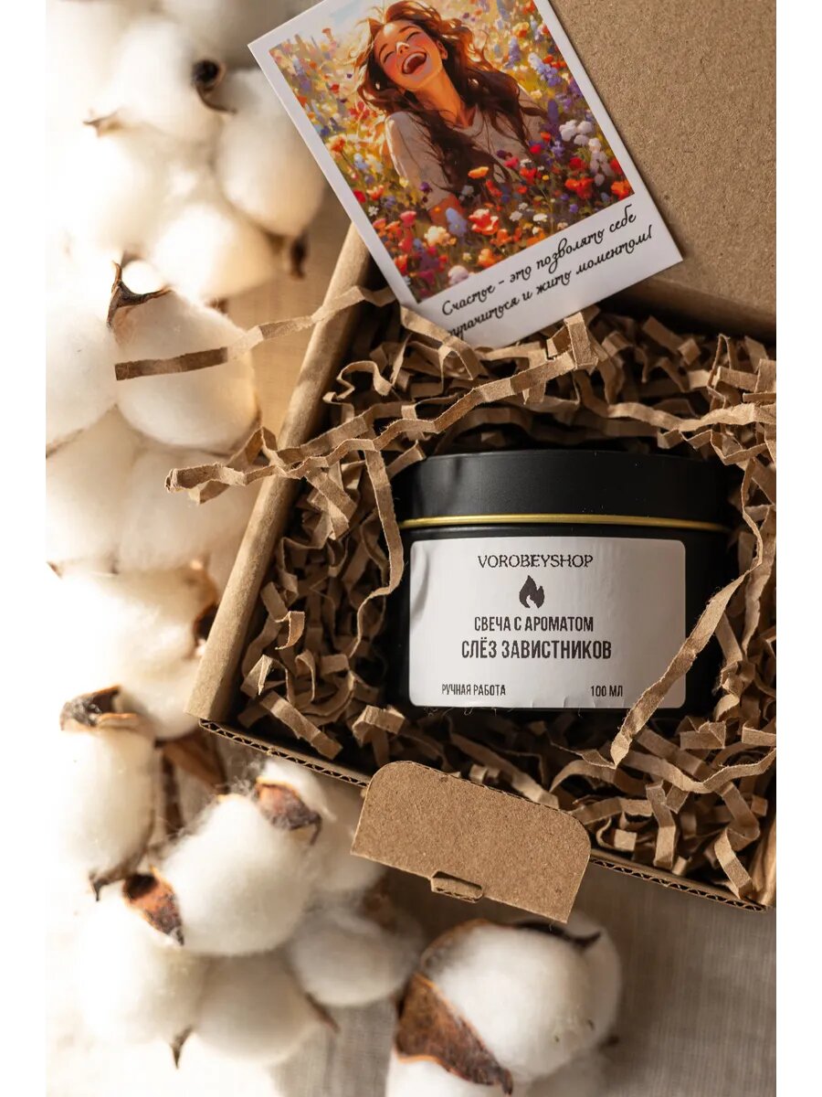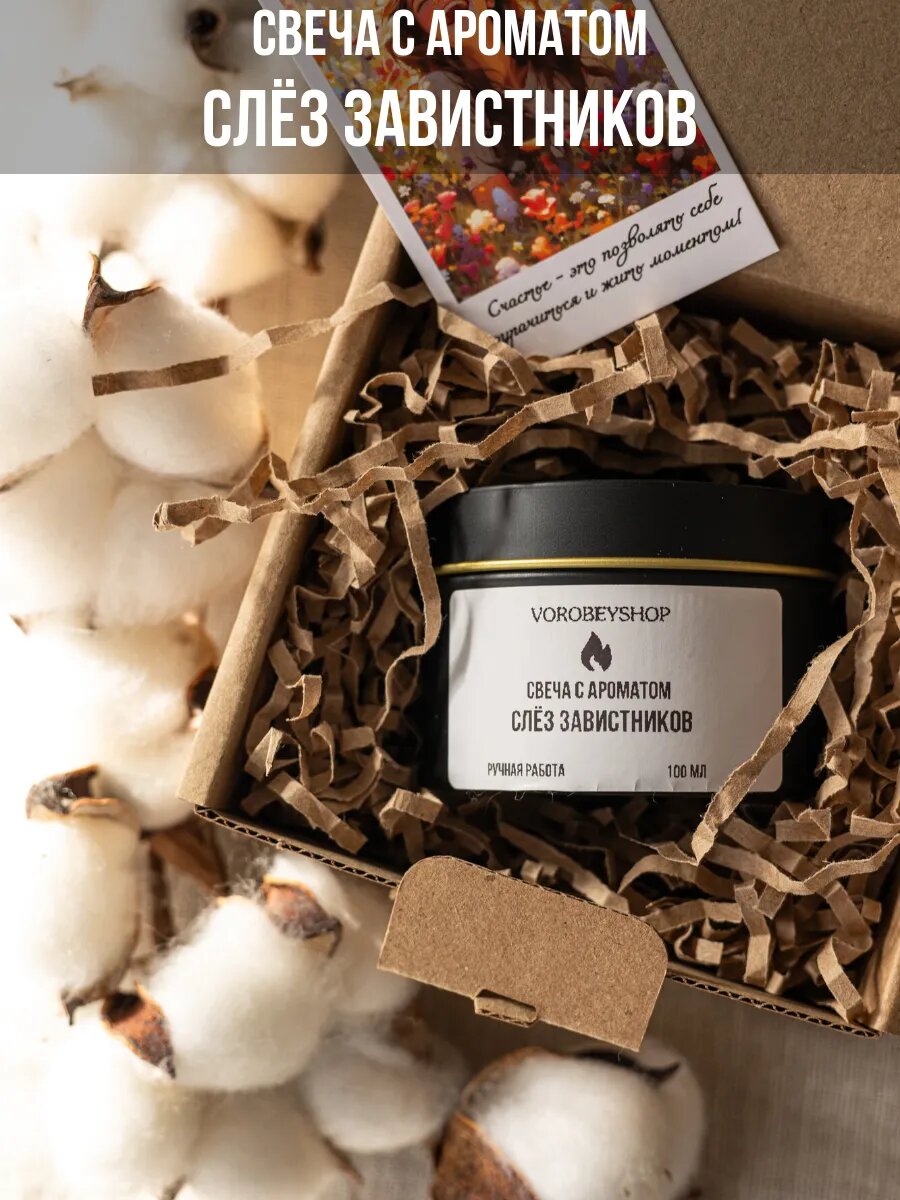 Отзывы на Свеча Vorobeyshop с ароматом "Слёз завистников", деревянная, с ароматом мокрых цветов, 120 мл