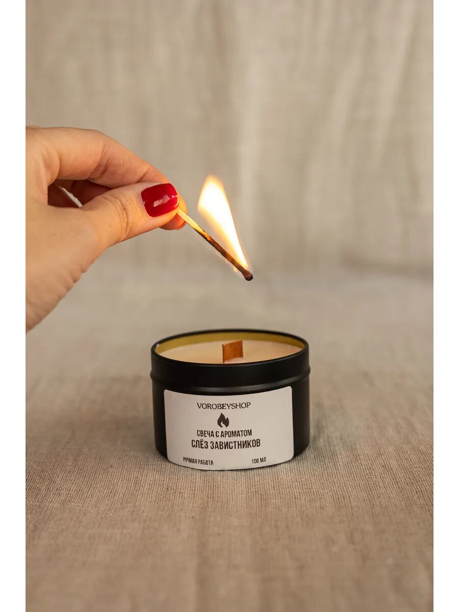 Свеча Vorobeyshop с ароматом "Слёз завистников", деревянная, с ароматом мокрых цветов, 120 мл информация:
