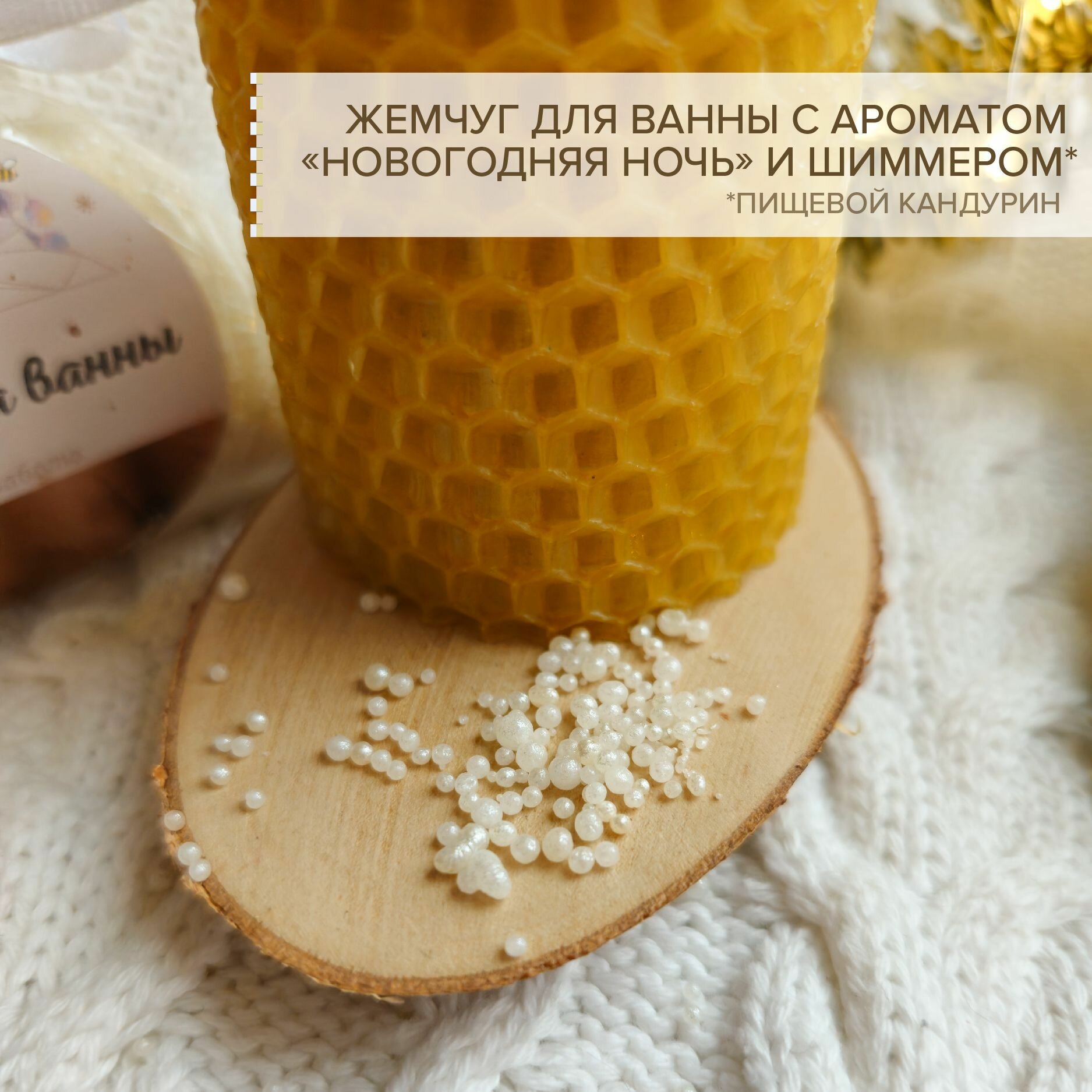 10 цен на Набор "Вечер для себя" свеча, подсвечник и жемчуг для ванны, подарок на новый год, ручная работа Pchelka.shop