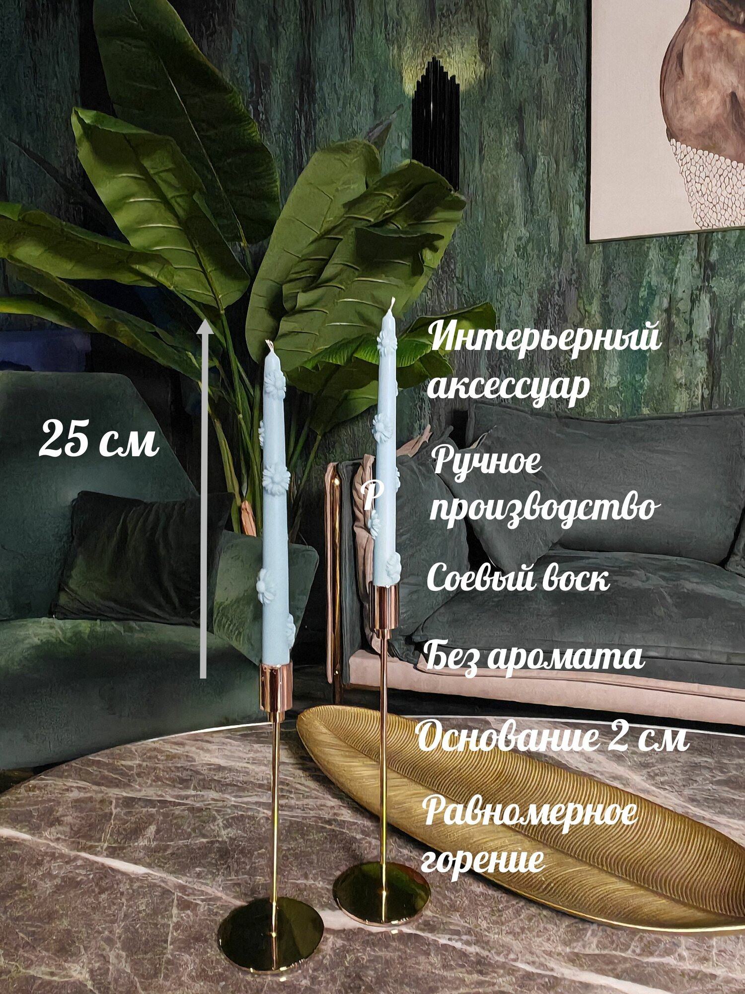 Свечи столовые, набор "Цветочный букет", 25см, 2 штуки, цвет мятный информация: