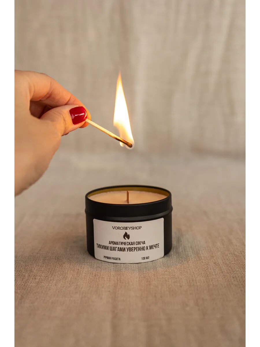 Свеча Vorobeyshop "Тихими шагами уверенно к мечте", ароматическая, с юмором, ручная работа информация: