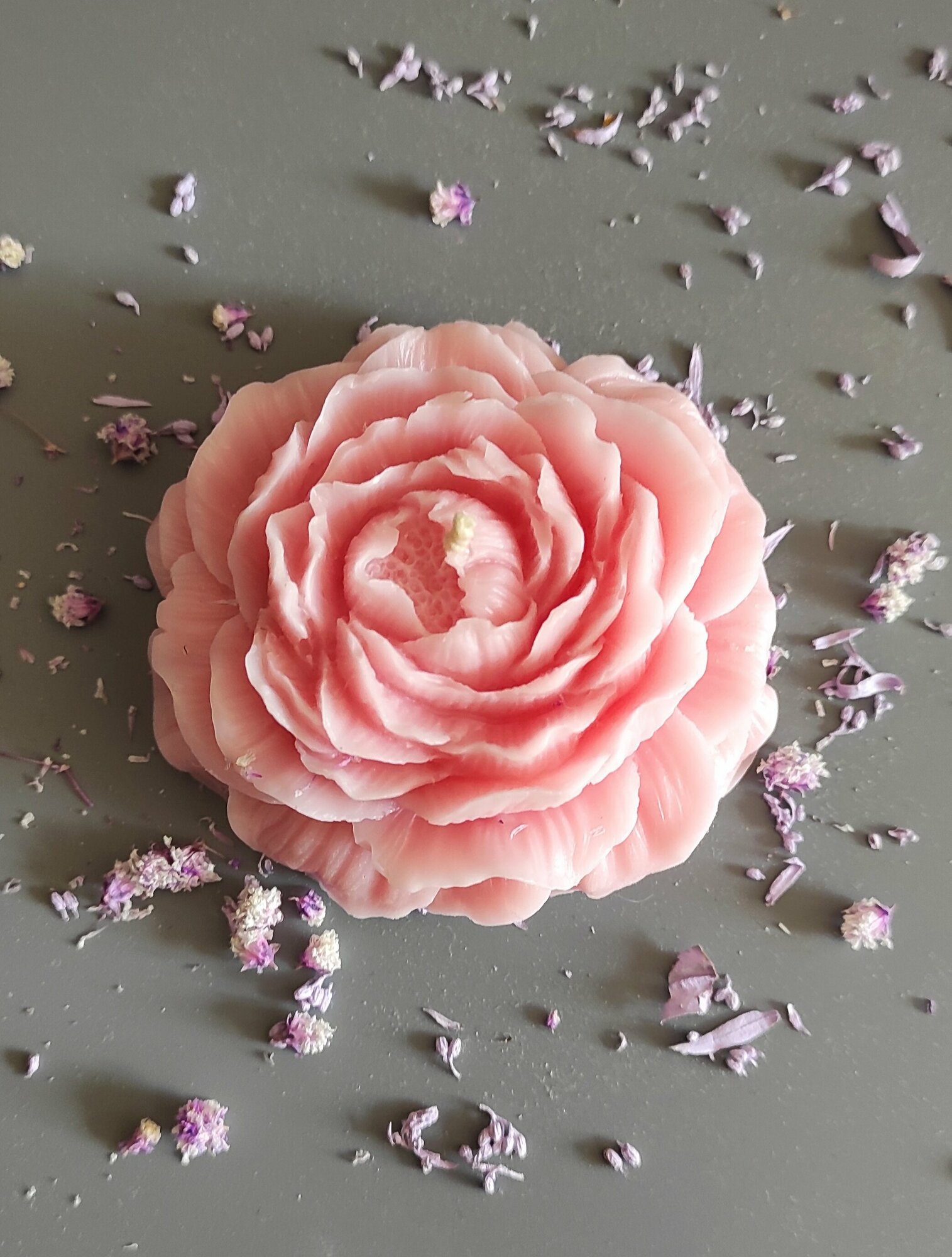 10 цен на Свеча ручной работы в форме цветка в подарочной упаковке/ Пион махровый розовый