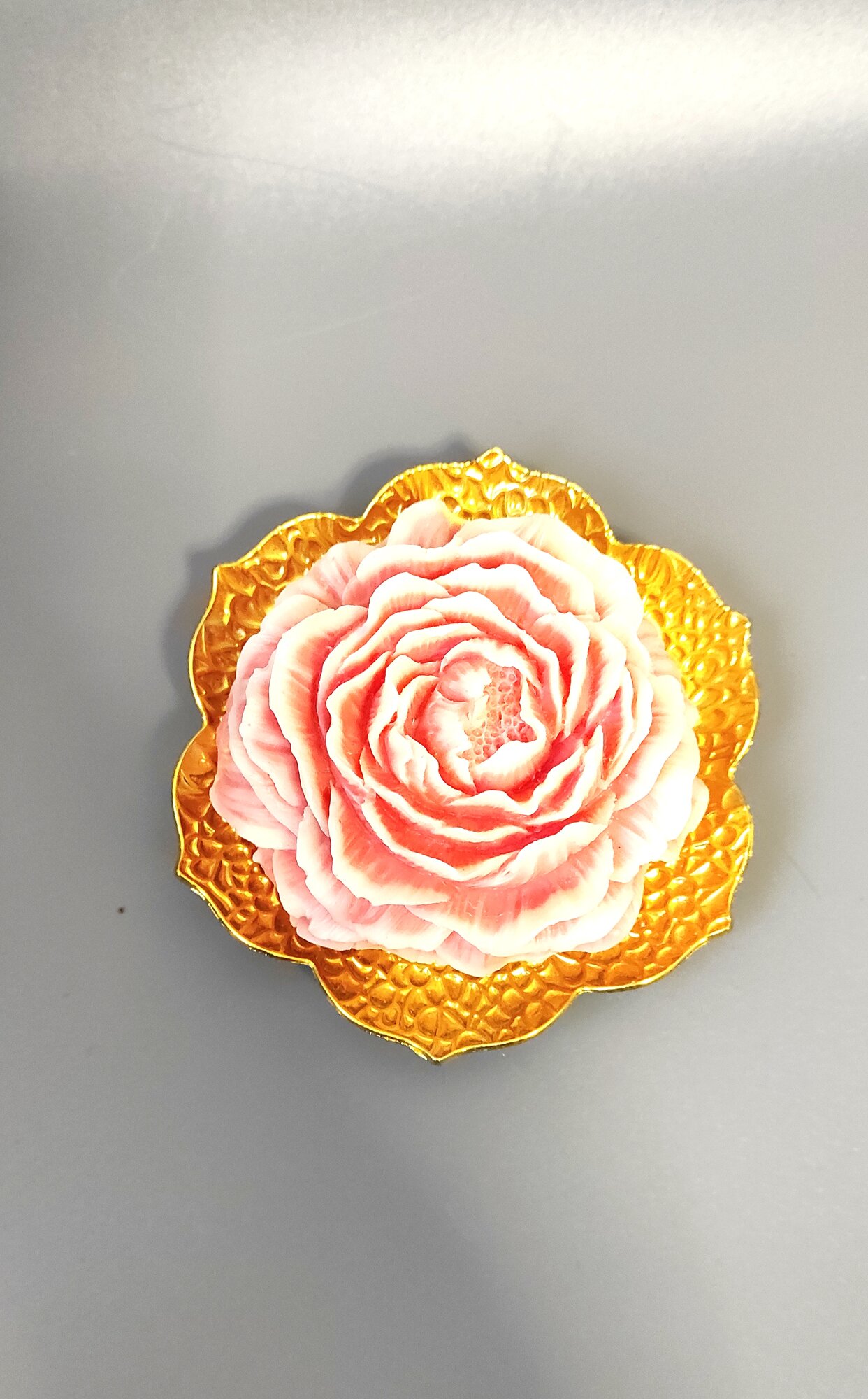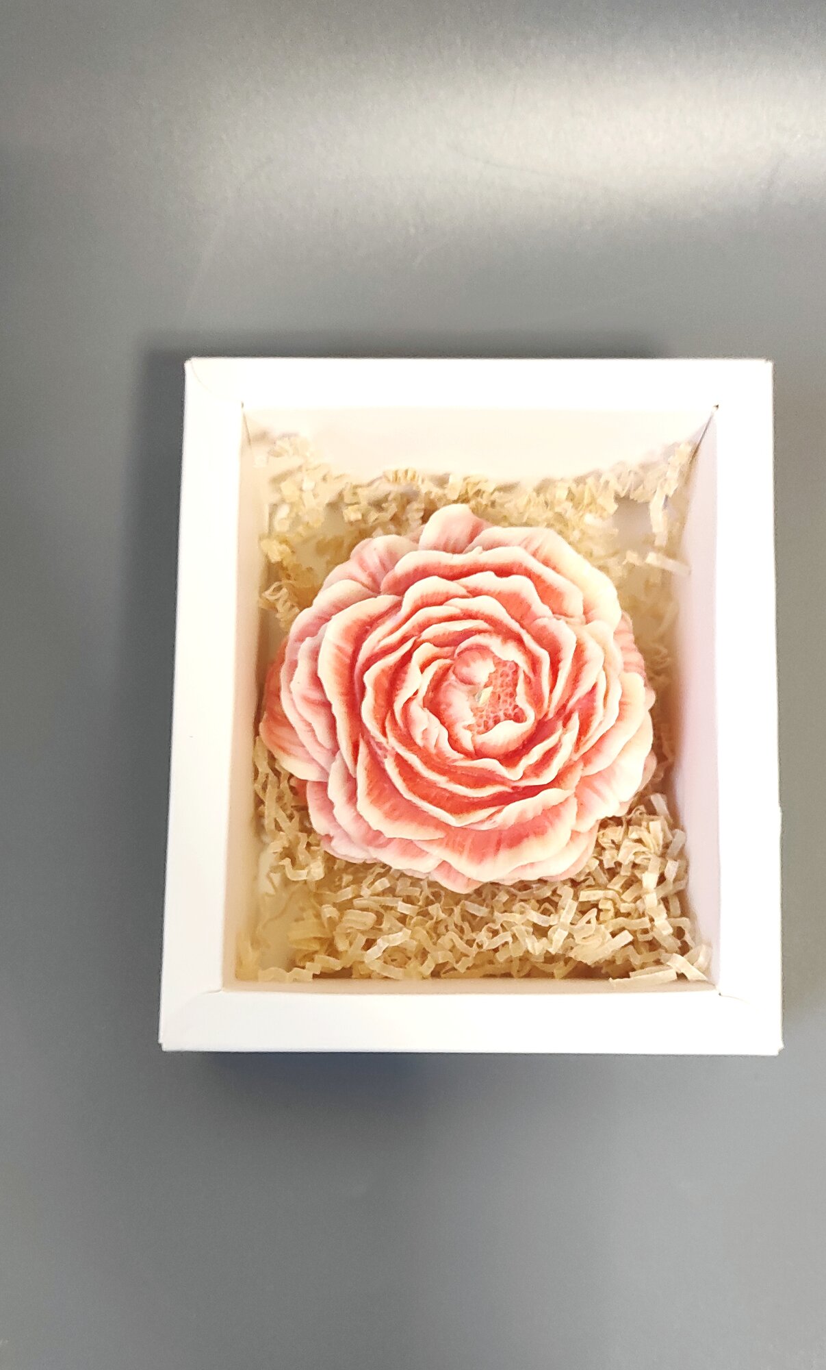 Свеча ручной работы в форме цветка в подарочной упаковке/ Пион махровый информация: