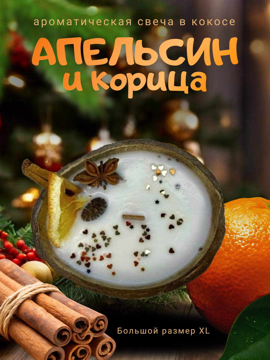 Отзывы на Свеча Dream Rose в кокосовой скорлупе, деревянный фитиль, апельсин корица 220-250 мл. Размер XL
