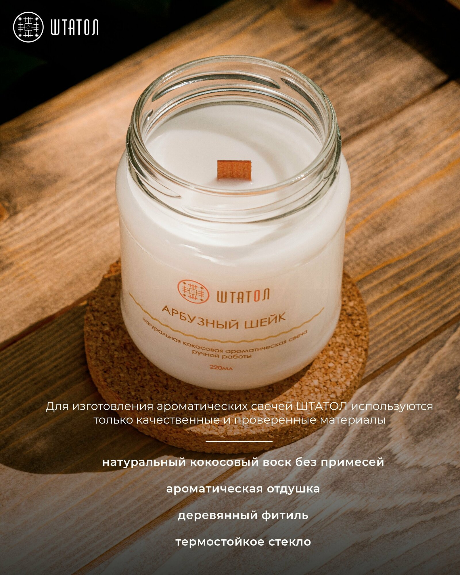 10 цен на "Арбузный шейк" / свечи штатол с ароматом / свеча ароматическая с деревянным фитилем в стеклянной банке с крышкой 220 мл. / свечка аромавоск