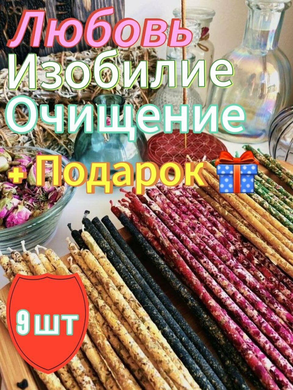 10 цен на Программные свечи набор. Любовь; Изобилие; Очищение; В наборе 3 заговора к зажиганию; + Подарок
