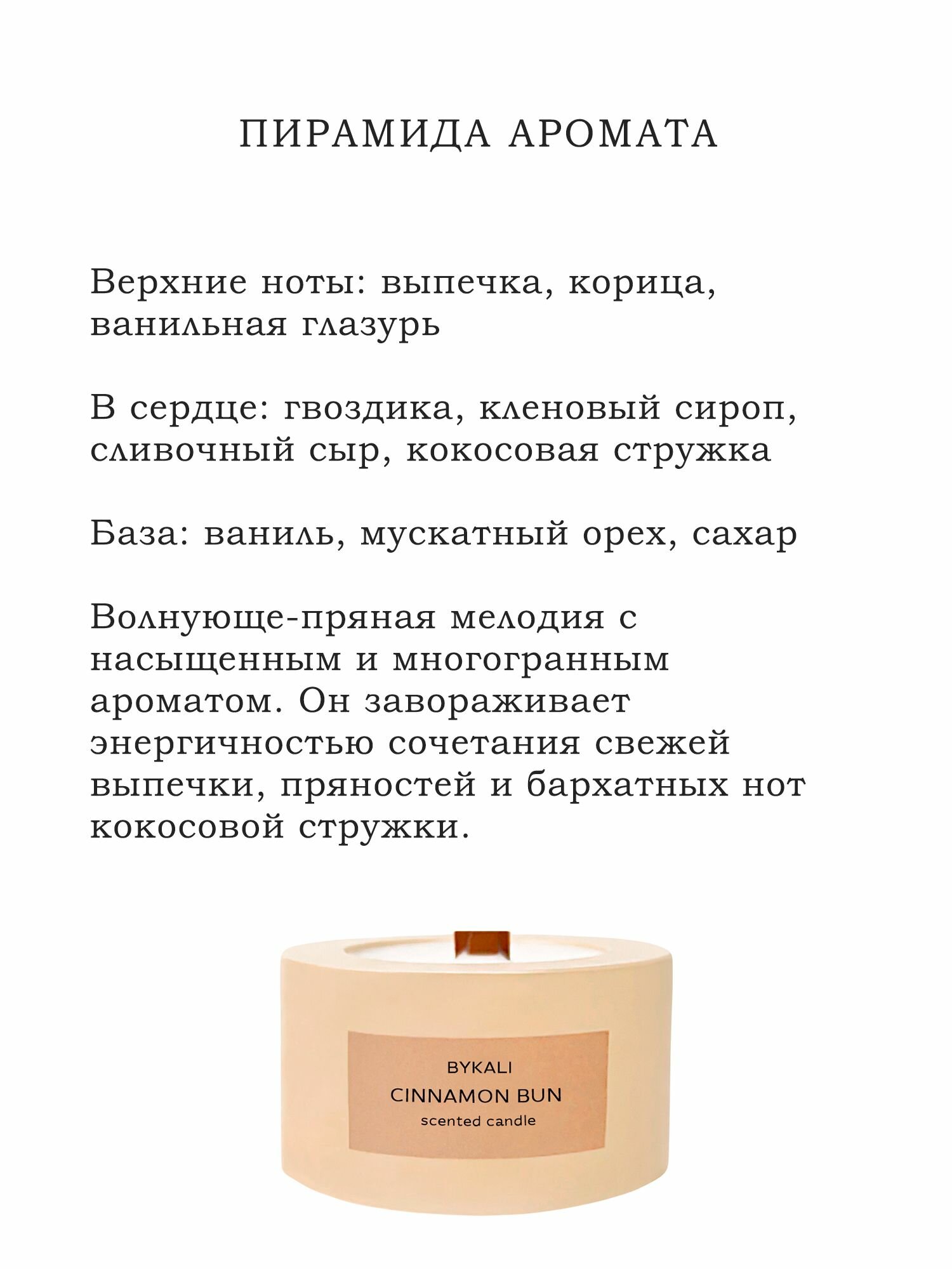 Свеча ароматическая "BYKALI" Булочка с корицей / с деревянным фитилем интерьерная в гипсе 50 мл информация: