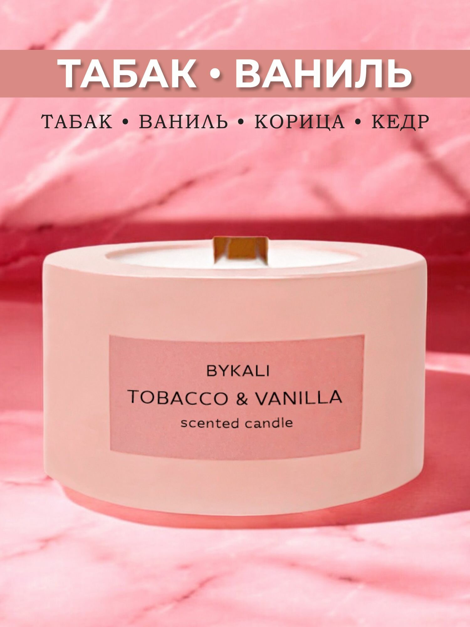 Отзывы на Свеча ароматическая "BYKALI" Табак и ваниль / с деревянным фитилем интерьерная в гипсе 50 мл