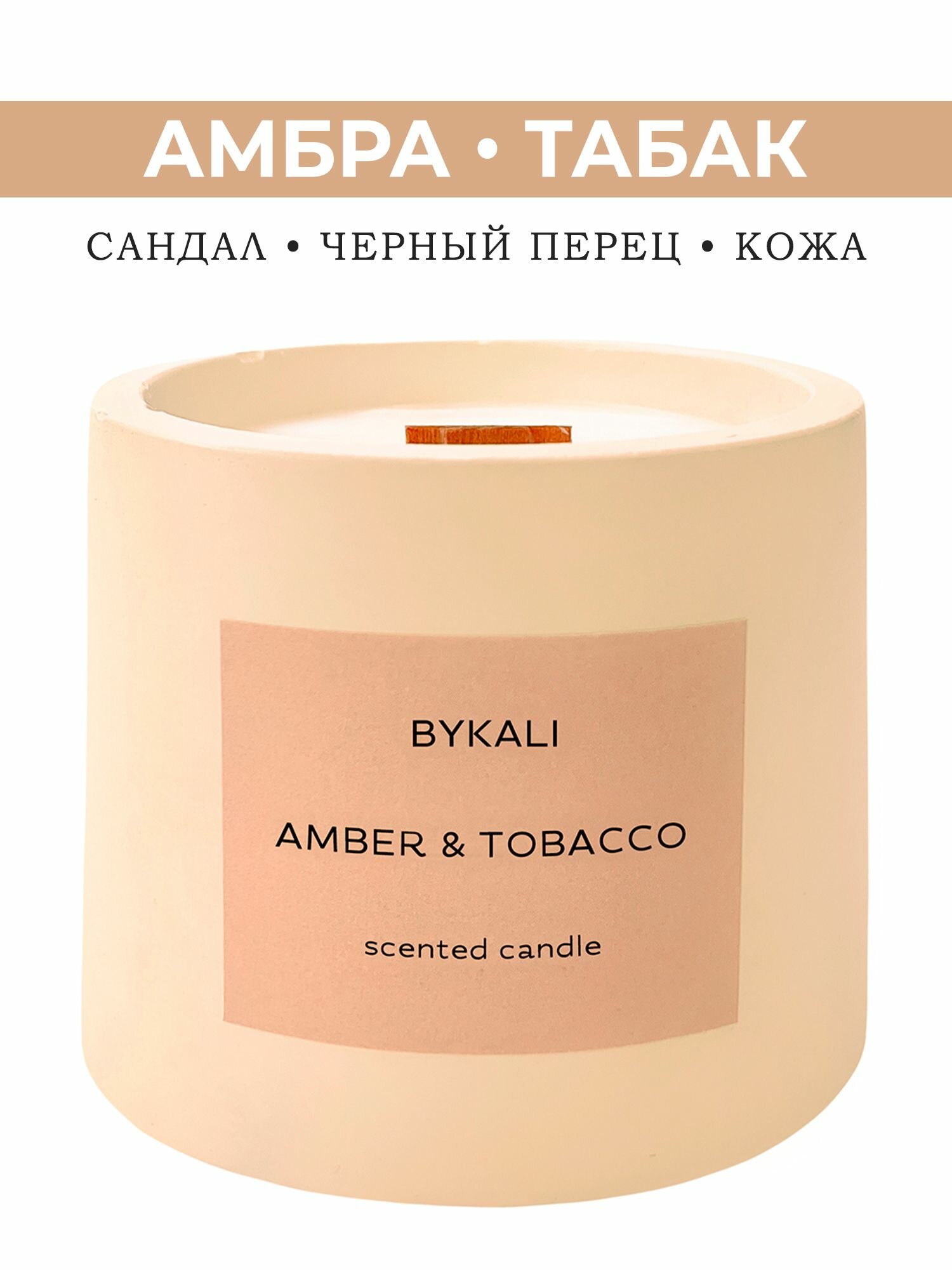 Свеча ароматическая "BYKALI" Амбра и Табак / с деревянным фитилем интерьерная в гипсе 120 мл информация: